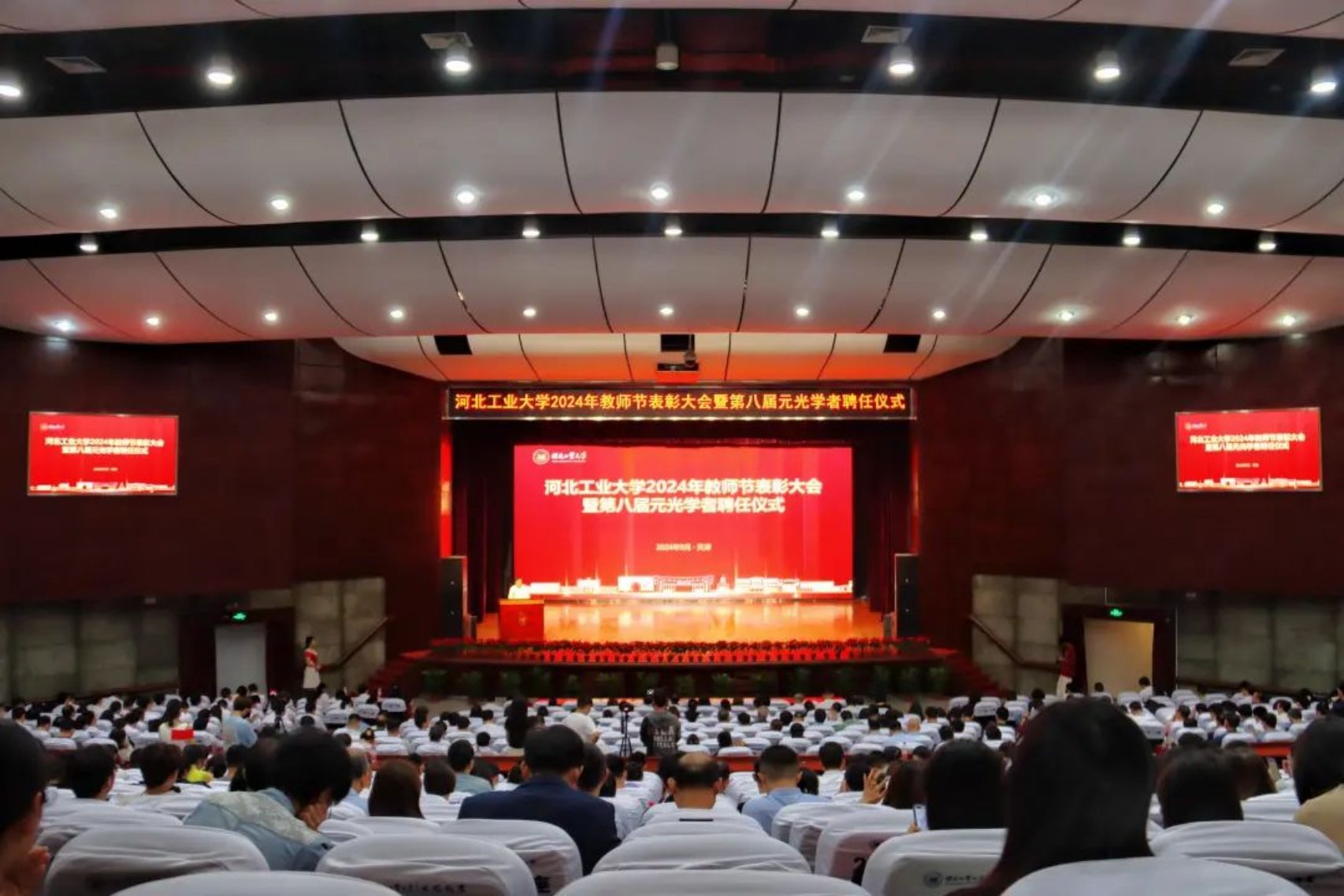 9月10日,河北千亿qy88国际官网入口2024年教师节表彰大会暨第八届元光学者聘任仪式在北辰校区大学生活动中心礼堂举行。学校党委副书记贺立军、赵斌,副校长马国伟、王慧远、李子彪、陈鸿雁出席表彰大会。学校全体中层干部、教职工代表参加大会,共同见证、传承师者的光辉与荣耀,庆祝第40个教师节的到来。