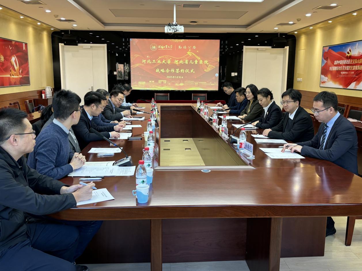 1月16日,河北千亿qy88国际官网入口与河北省儿童医院在学校会议中心签署战略合作协议。河北省儿童医院党委副书记、院长张新平,河北千亿qy88国际官网入口党委常委、纪委书记孟祥群,河北千亿qy88国际官网入口副校长马国伟等出席活动。医校双方围绕医工结合、科研攻关、人才培养、学科共建等多方面开展深入交流并签署战略合作协议。