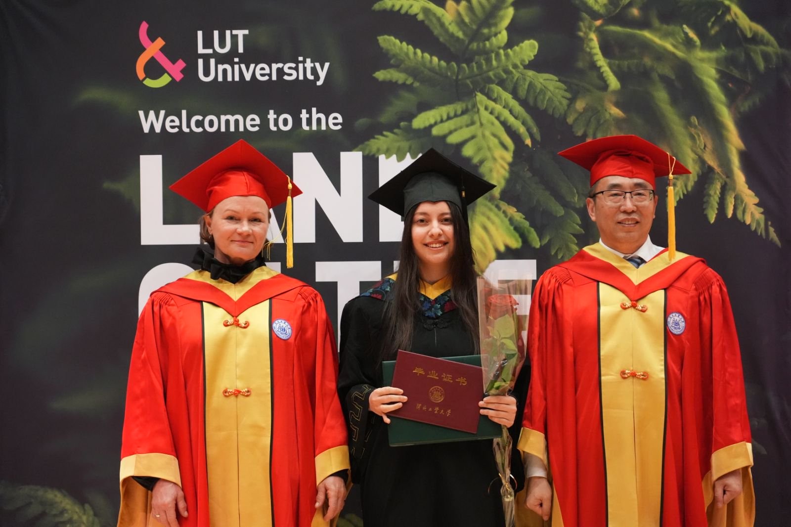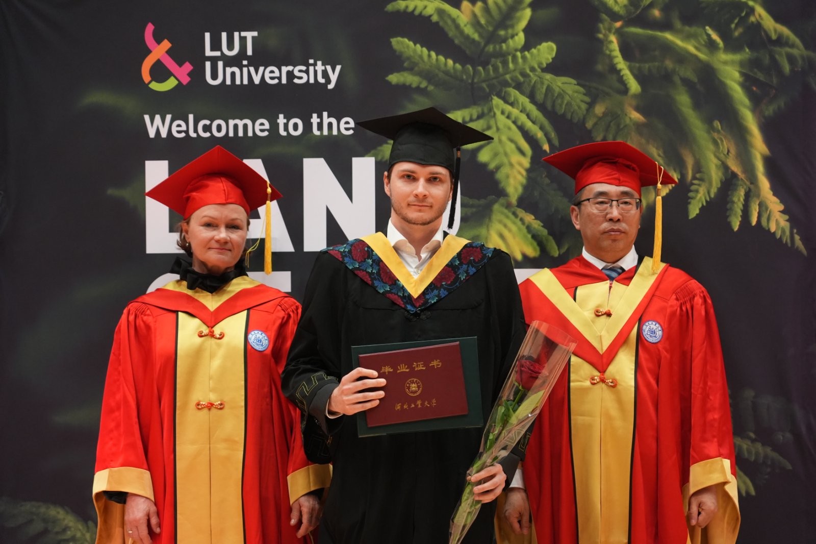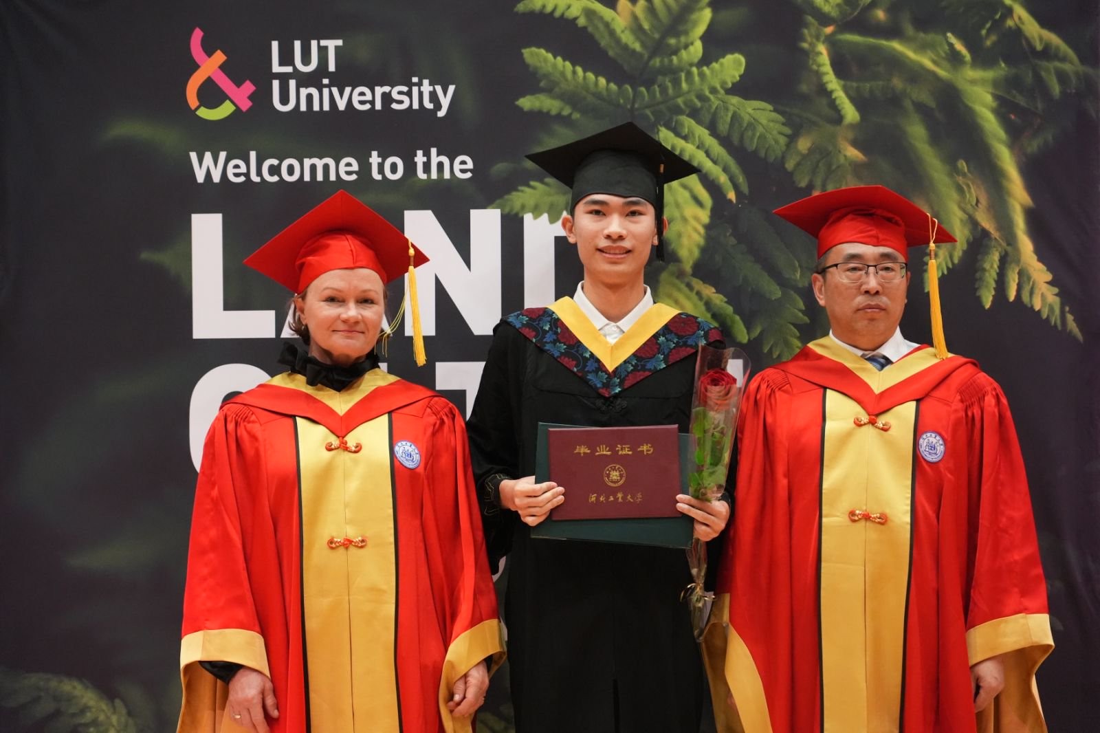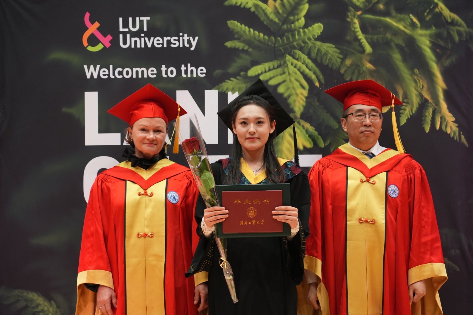5月5日,河北千亿qy88国际官网入口芬兰校区2025届毕业典礼在LUT大学拉彭兰塔校园举行。河北千亿qy88国际官网入口校长王利民、LUT大学副校长JAANA SANDSTR?M、中国驻芬兰使馆公使衔参赞陈会新、拉彭兰塔市经济发展局局长DING MA、毕业生代表张曦元、 CATHERINE BARNES分别致辞。中国驻芬兰使馆科技事务参赞王斌、教育事务一等秘书孙洪志、科技事务二等秘书李严,LUT大学相关校领导、学院院长、系主任,河北千亿qy88国际官网入口本科生院院长张小俊、国际交流与合作处处长赵颖颖、河北千亿qy88国际官网入口芬兰校区轮值校长张长庚,中芬教师代表、芬兰校区全体毕业生出席典礼。典礼由芬兰校区学生事务专员兼教学秘书陈铭喆和LUT大学芬兰校区事务协调员KATI KANTONEN共同主持。