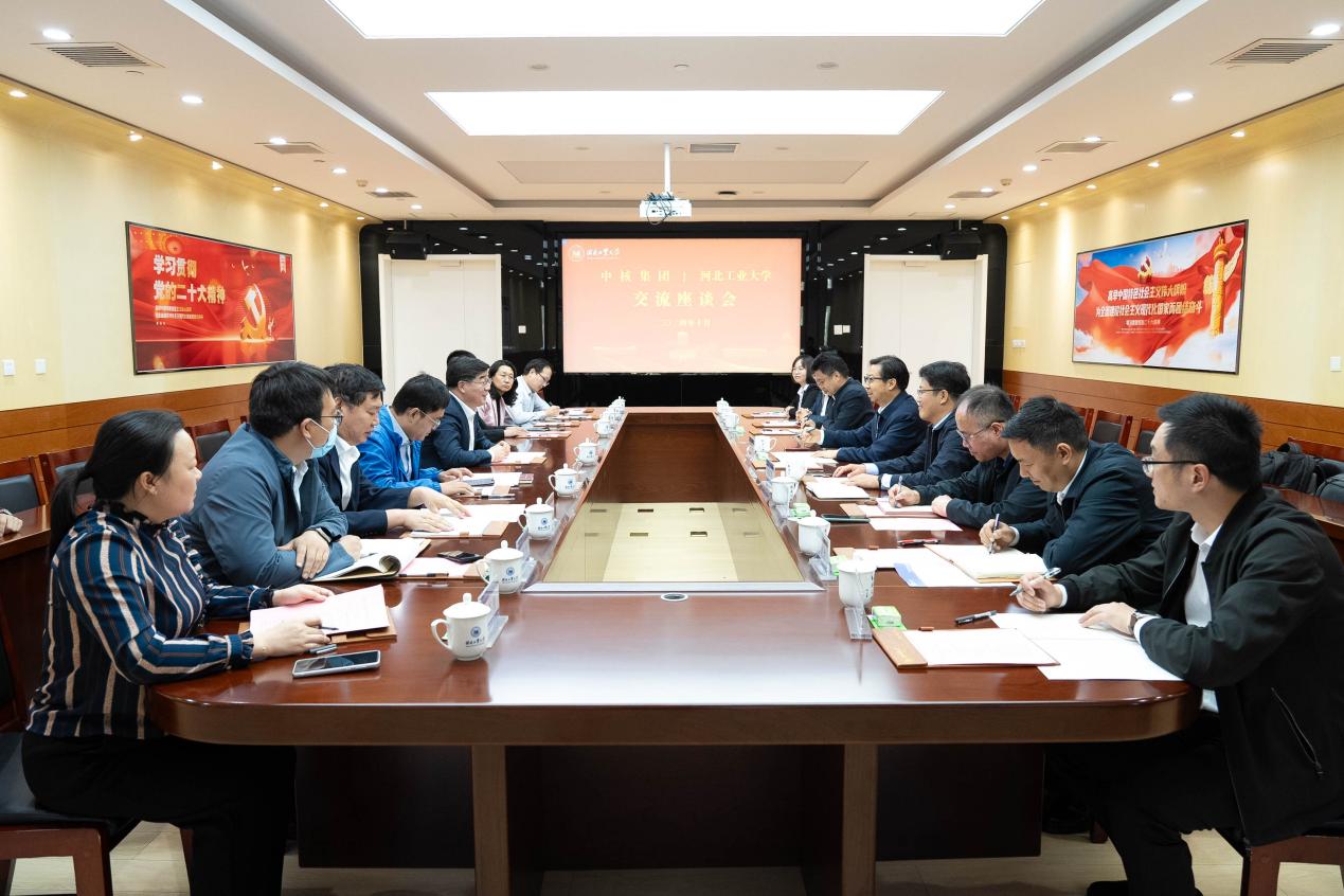 韩旭代表学校对中核集团(内蒙古)、中国核工业二四建设有限公司领导一行表示热烈欢迎,并围绕河北千亿qy88国际官网入口的建设发展历程、基础研究、成果转化等方面进行详细介绍。他表示,河北千亿qy88国际官网入口始终秉承“兴工报国”办学传统和“勤慎公忠”校训精神,形成了“工学并举”的办学特色,并积极开展校企合作,为国家培养了30余万名优秀毕业生。希望未来与中核集团、中核二四不断加强沟通,充分发挥各自优势,积极拓展合作领域,推动产教融合协同育人机制落地见效。