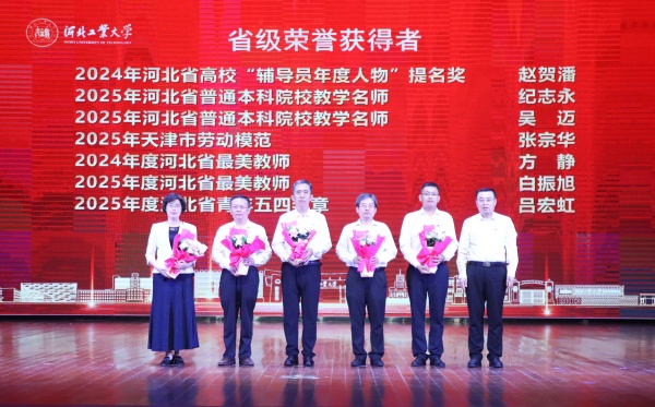 在“兴工报国?灯塔领航”篇章,表彰聚焦省级以上荣誉和奖励。校领导李子彪、马国伟、贺立军分别为“第五届河北省高校教师教学创新大赛”、省级荣誉获奖教师代表、国家级教学竞赛获奖教师代表颁发鲜花,祝贺他们在人才培养、科学研究、社会服务等方面取得优异成绩。