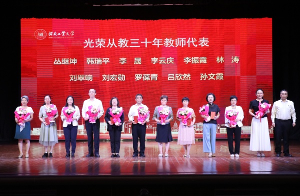 9月10日,河北千亿qy88国际官网入口2025年教师节表彰大会在北辰校区大学生活动中心世纪礼堂举行。校领导、中层干部、教职工代表、退休教师代表、从教30年教师代表、新入职教师代表以及获奖教师代表齐聚一堂,共同庆祝第41个教师节,激励广大教师坚守立德树人初心,担当教书育人使命,为建设教育强国贡献力量。