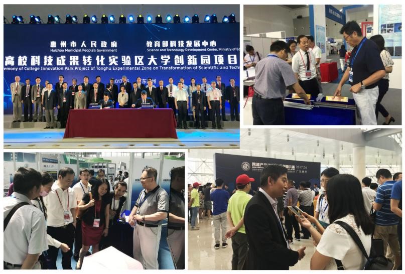 开幕式上,教育部科技发展中心与惠州市政府现场签约总投资350亿元的“潼湖高校科技成果转化实验区”大学创新园项目。我校受邀成为首批入驻的21所高校之一。副校长
