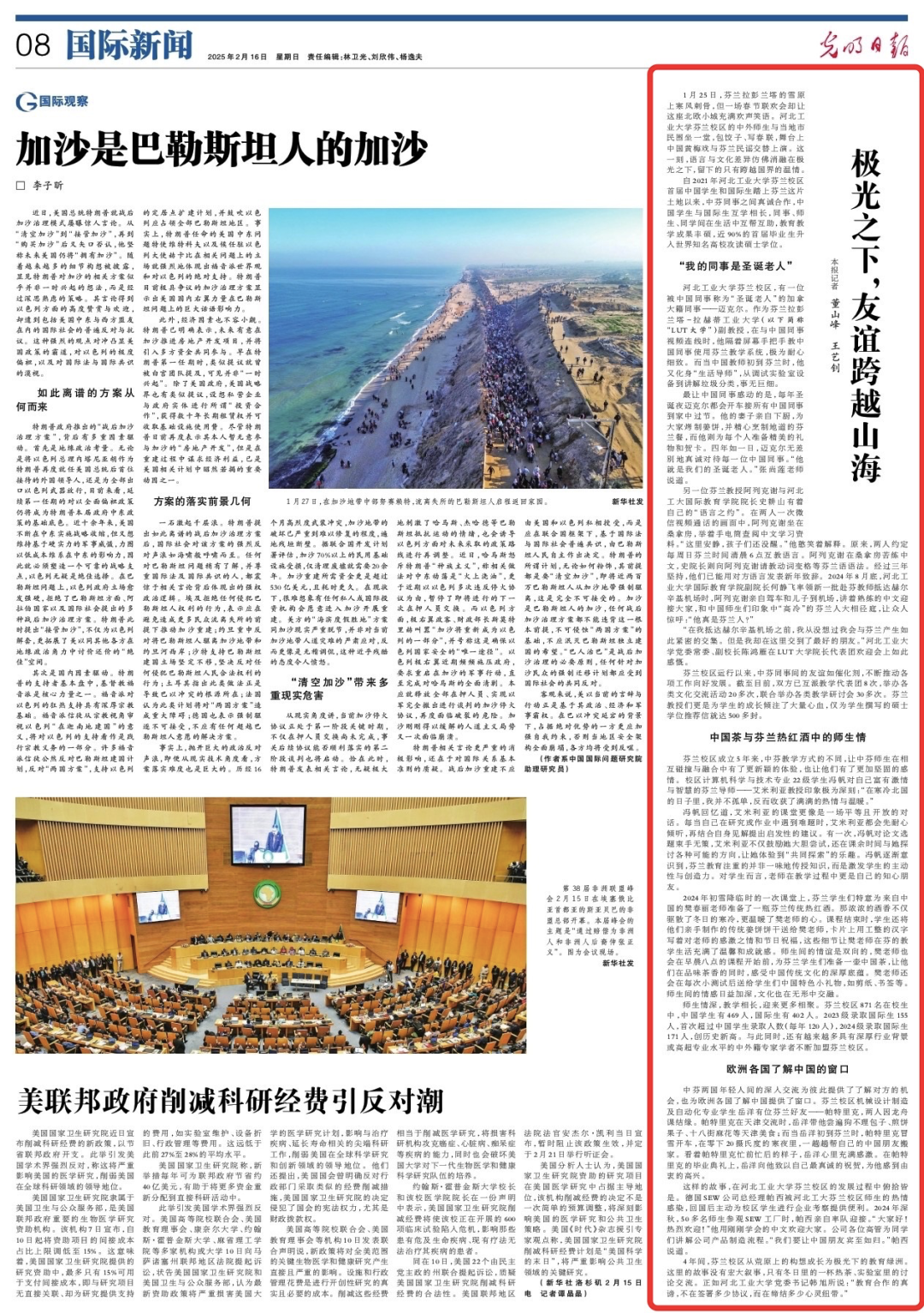 2月16日,《光明日报》发表长篇通讯《极光之下,友谊跨越山海》,报道了河北千亿qy88国际官网入口芬兰校区的中外师生与当地市民同庆春节的温情场景。讲述了河北千亿qy88国际官网入口芬兰校区在极光中消融语言与文化差异,跨越国界的深厚情谊。自2021年河北千亿qy88国际官网入口芬兰校区首届招生后,4年发展,教育合作注重缔结心灵纽带,教育教学成果丰硕,国际影响力和声誉不断提升,芬兰校区从荒原上的构想成长为极光下的教育绿洲,成为了欧洲各国了解中国的窗口。