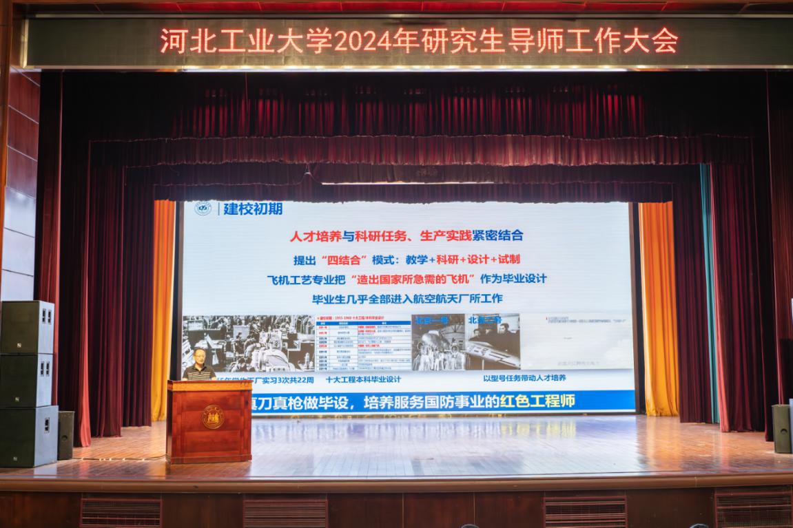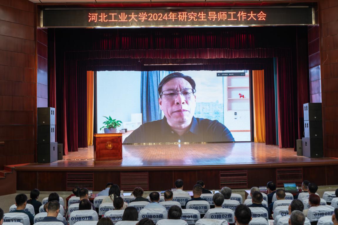 王慧远从三个方面介绍了学校研究生教育工作情况:一是兴工报国,矢志教育强国建设。他围绕习近平总书记关于教育强国的重要论述,对学校秉承“兴工报国”办学传统推进“双一流”建设的新成效进行简要介绍。二是工学并举,助力美丽河北建设。展示了河北千亿qy88国际官网入口聚焦京津冀协同发展、雄安新区建设,服务高质量发展,优化学位点布局,不断提高重点领域急需学科人才培养能力的新方案。三是人才强校,提质导师队伍建设。总结了学校实施人才引育政策以来,在科学研究、学位点布局、导师队伍建设等方面的新局面;同时分析了目前研究生教育存在的一些问题,为今后发展指明了方向。他希望,各研究生导师要弘扬教育家精神,争做新时代教书育人大先生。