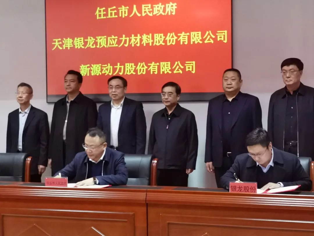 任丘市委书记王少杰,市长尚亮,市委常委、常务副市长马占芳,副市长张顺义,经济开发区党工委书记、管委会主任王小刚,新源动力公司总战略官刘常福,银龙股份董事长谢志峰,我校副校长马国伟等出席签约仪式。任丘市副市长张顺义代表市政府与天津银龙预应力材料股份有限公司、新源动力股份有限公司共同签订合作框架协议。签约仪式由马占芳主持。