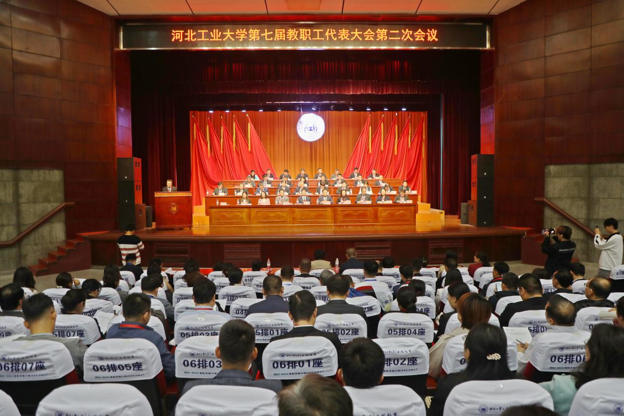 10月11日,河北千亿qy88国际官网入口第七届教职工代表大会第二次会议、第八届工会会员代表大会第二次会议在北辰校区大学生活动中心礼堂举行。全体校领导出席大会,教代会代表198人、工代会代表76人参加大会。