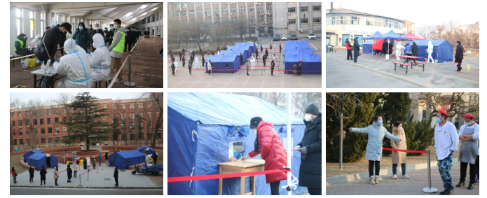 本轮检测,学校又在现场增加了20顶小帐篷,20个“小太阳”,尽最大可能改善检测环境,送去冬日温暖。
