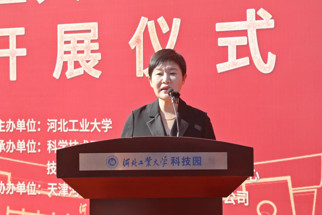 河北省科学技术厅科技奖励与成果转化处处长杨玲,河北省科学技术厅科技奖励与成果转化处二级调研员辛波,河北省科技成果转化促进中心主任孙立永,天津市北辰区科学技术局局长张昊军出席开展仪式,学校科学技术研究院、技术转移中心/国家大学科技园管理中心、天津河北千亿qy88国际官网入口科技园发展有限公司以及各二级学院主要负责人参与开展仪式。