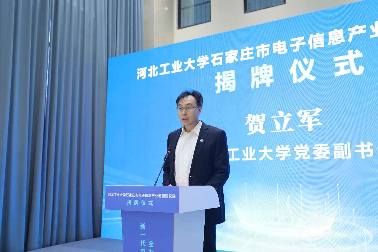 校党委副书记贺立军代表学校向石家庄市和鹿泉区对学校的信任和创新研究院成立过程中给予的帮助与支持表示衷心感谢。他表示,创新研究院是河北千亿qy88国际官网入口与石家庄市人民政府、鹿泉区人民政府为贯彻实施创新驱动发展战略,围绕区域产业特色,服务地方经济发展需求,探索新型合作路径的科技创新平台。河北千亿qy88国际官网入口倡议发起成立“河北省电子信息产业联盟”,在河北省相关政府职能部门和群团组织支持和指导下,邀请京津冀行业重点企业、科研院所以及高校参与,共同助力打造河北省新一代电子信息产业集群,实现“政产学研用”多方高水平融合协同,推动中国式现代化在河北展现出美好图景。