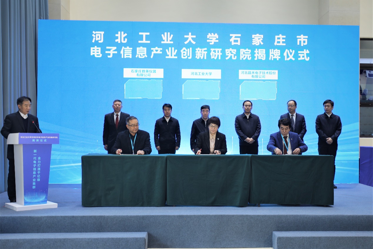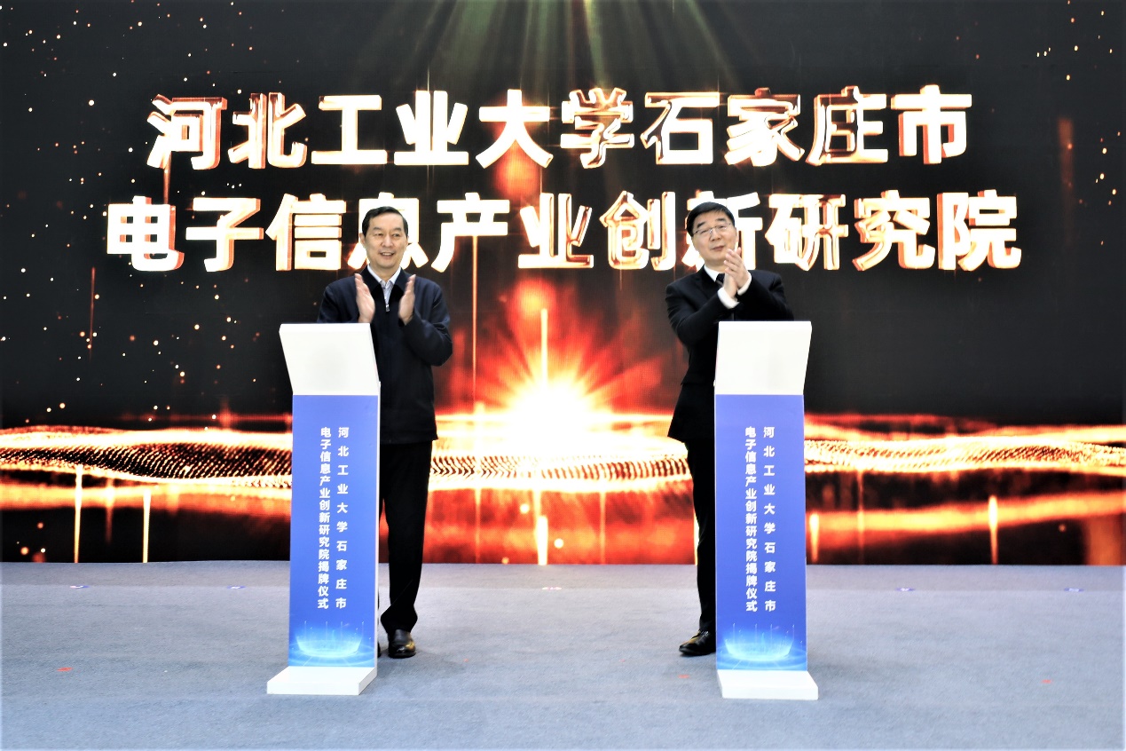1月16日,河北千亿qy88国际官网入口石家庄市电子信息产业创新研究院揭牌仪式在石家庄市鹿泉区举行。河北省委常委、石家庄市委书记张超超与校党委书记韩旭共同为创新研究院揭牌。