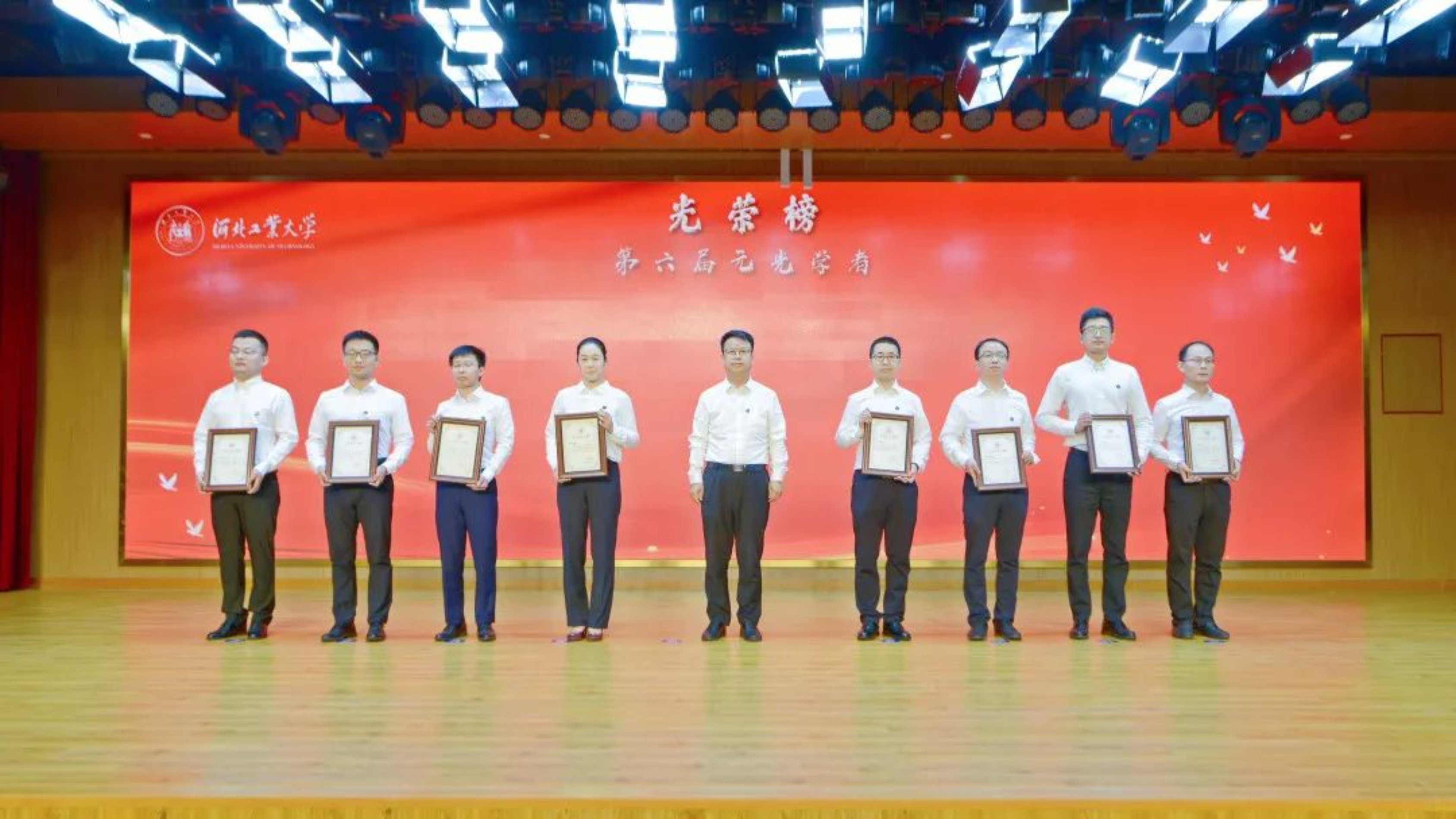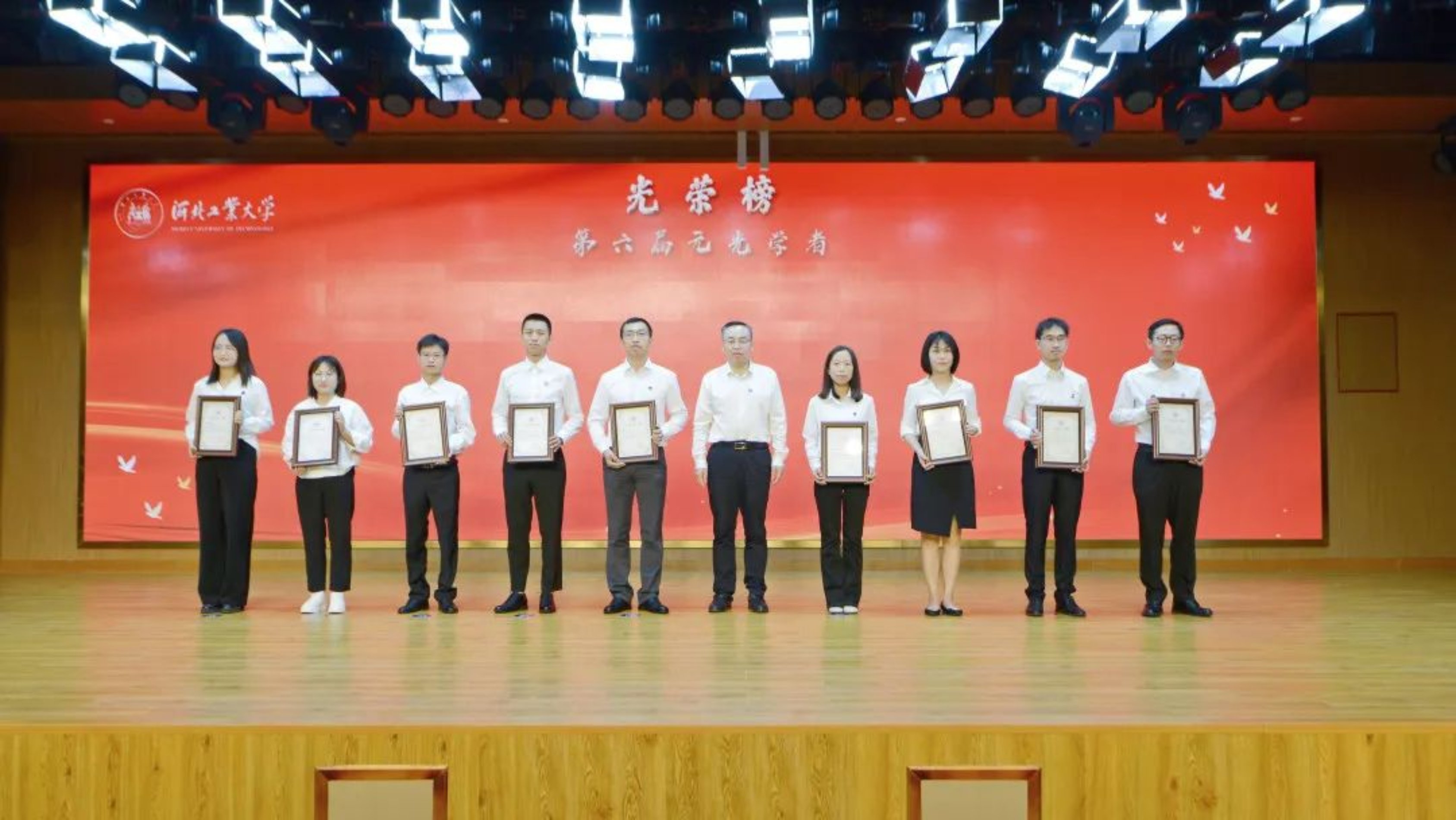 校领导为受聘元光学者逐一颁发聘书。此次我校共有93名人才入选第六届“元光学者计划”,其中领军岗1人,特聘岗32人,启航岗60人。