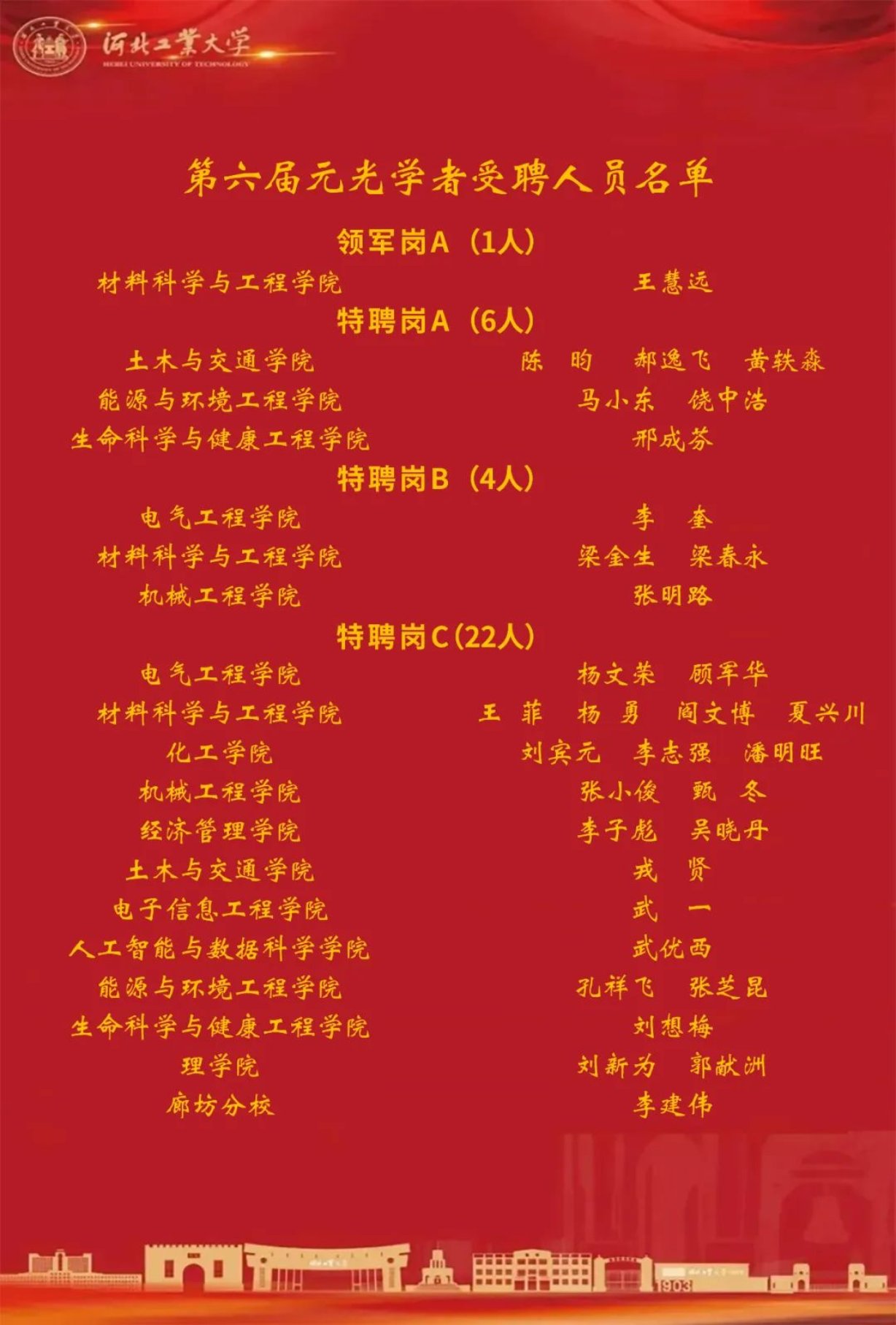 聘任仪式由校党委常委、副校长王慧远主持。他介绍了学校人才引育的时代背景和人才培育的工作思路,并宣读了第六届元光学者受聘人员名单。