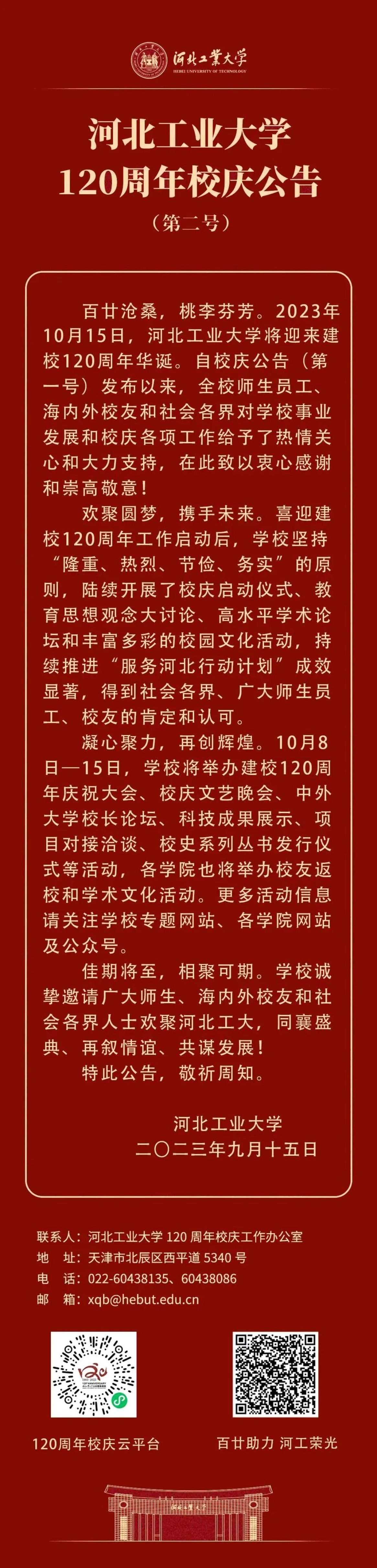 河北千亿qy88国际官网入口120周年校庆公告(第二号)