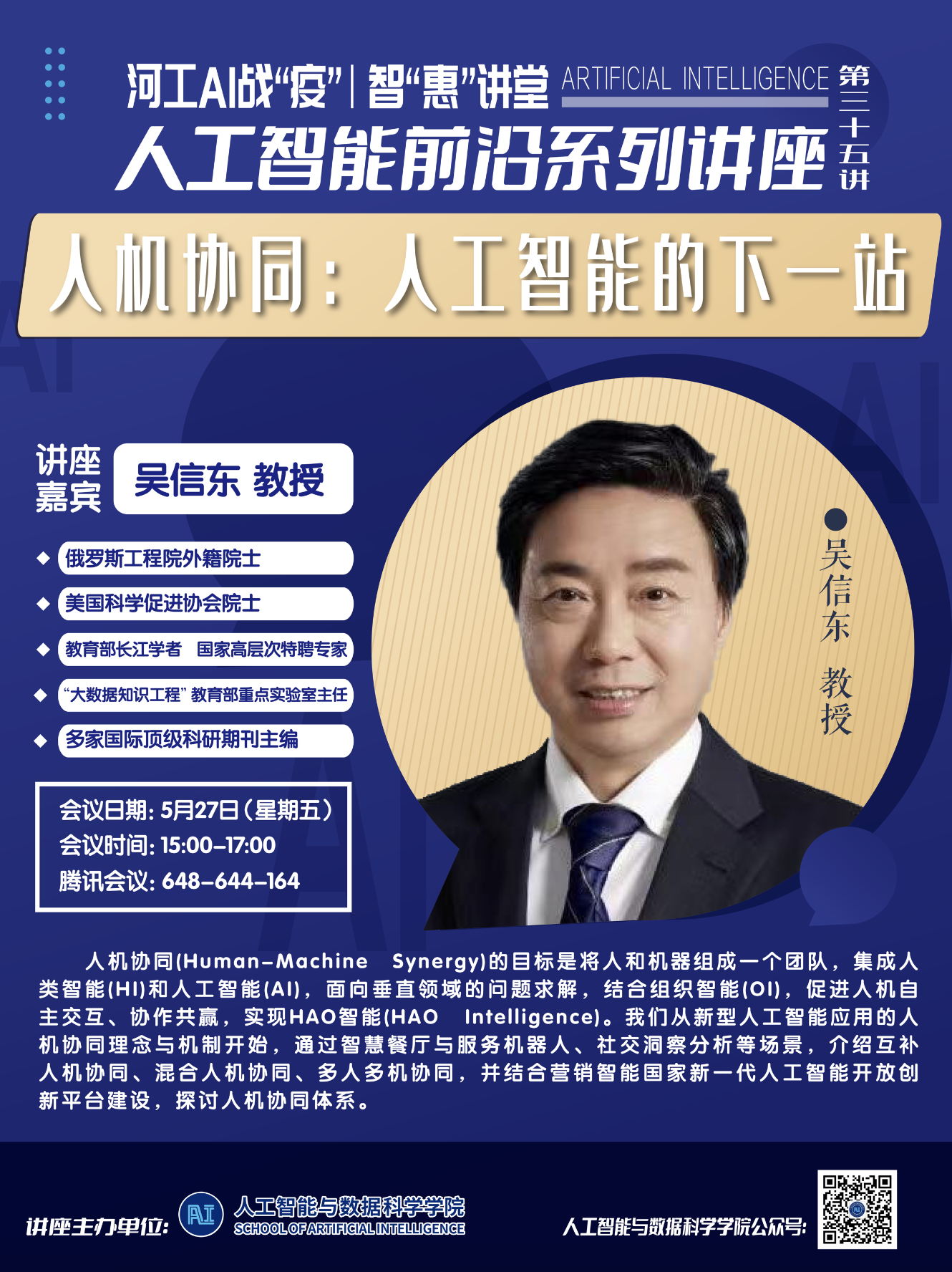 学术讲座【河工AI战“疫”|智“惠”讲堂(三十五讲)】人机协同:人工智能的下一站