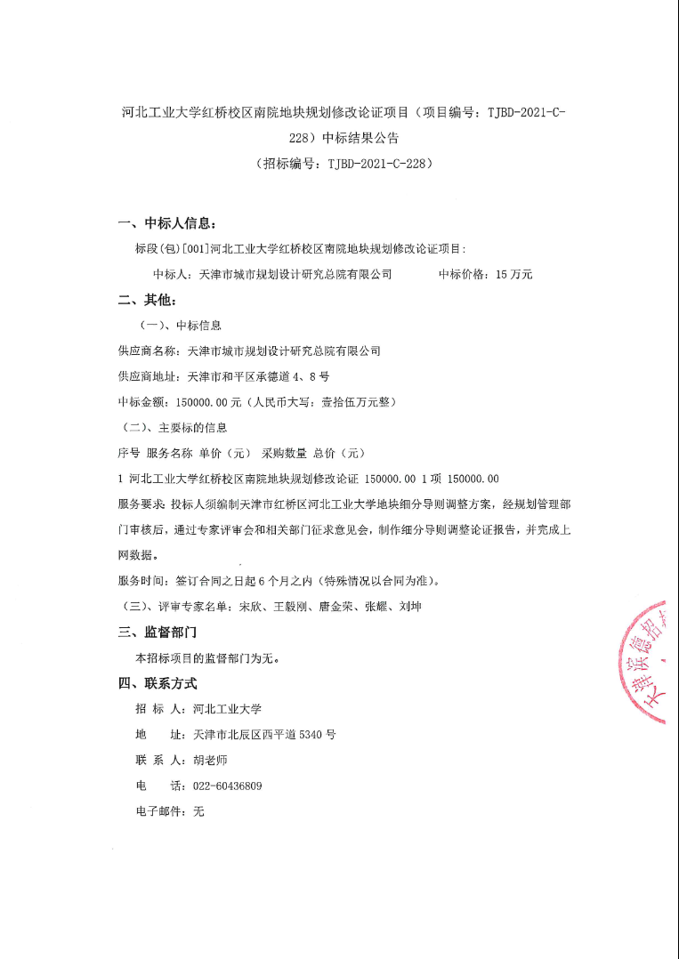 基建招标 当前位置:首页 \ 招标信息 \ 基建招标 河北千亿qy88国际官网入口红桥校区南院地块规划修改论证项目(项目编号:TJBD-2021-C-228)中标结果公告 时间:2021-08-25 点击量:次 河北千亿qy88国际官网入口红桥校区南院地块规划修改论证项目(项目编号:TJBD-2021-C-228)中标结果公告